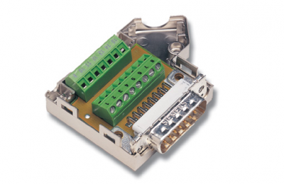 The ACC-BT12 D-subminiature adapter shell provides a high-density, D-subminiature connector to two-level terminal transition in an easy-to use form factor. The ACC-BT12 simplifies field wiring interfaces by providing convenient lift clamp-style terminals. The ACC-BT12 does not require DIN-rail mounting and can provide the D-sub to terminal block interface in a very small space.